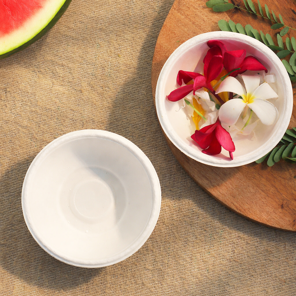 Versatile biodegradable bowls in various sizes for soups, cereals, rice bowls, and more. Made from premium sugarcane bagasse, available with secure-fitting lids for takeout and delivery. Perfect for restaurants, cloud kitchens, and food service businesses.