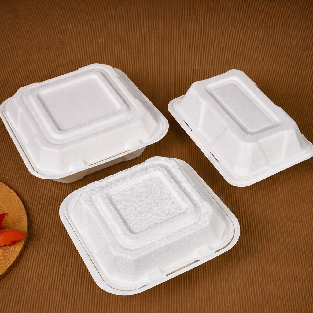 Designed with biryani, rice dishes, and saucy meals in mind, our 9×6 Clamshell Box combines deep storage with natural durability. Crafted from sugarcane bagasse, this box is a sustainable and sturdy choice for heavy, aromatic dishes. With a capacity of 580ml, it holds generous servings and keeps food intact with its secure lid. Leak-resistant and heat-friendly, it's an excellent solution for restaurants and tiffin services aiming to make their packaging plastic-free while still delivering premium presentation and performance.