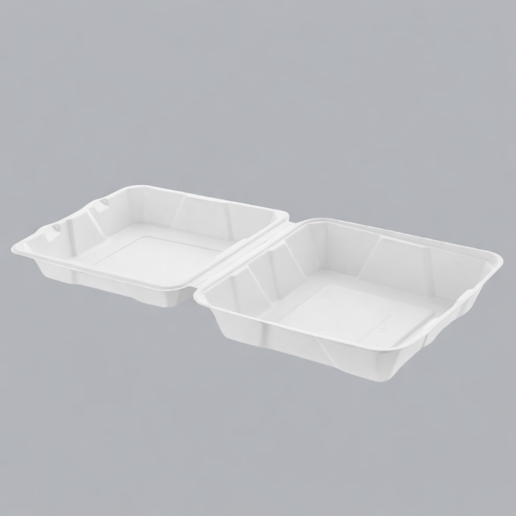 Our 9×9 Clamshell Box offers the perfect balance of space and sustainability, making it a popular choice for combo meals, noodles, pastas, or biryani. Crafted from plant-based bagasse, it's biodegradable, compostable, and safe for both microwave and refrigerator use. The large single compartment provides ample room for generous servings, while the clamshell design ensures secure handling during transport. With excellent oil and water resistance, it's a smart pick for food delivery platforms, catering services, and QSR chains looking to replace plastic boxes.